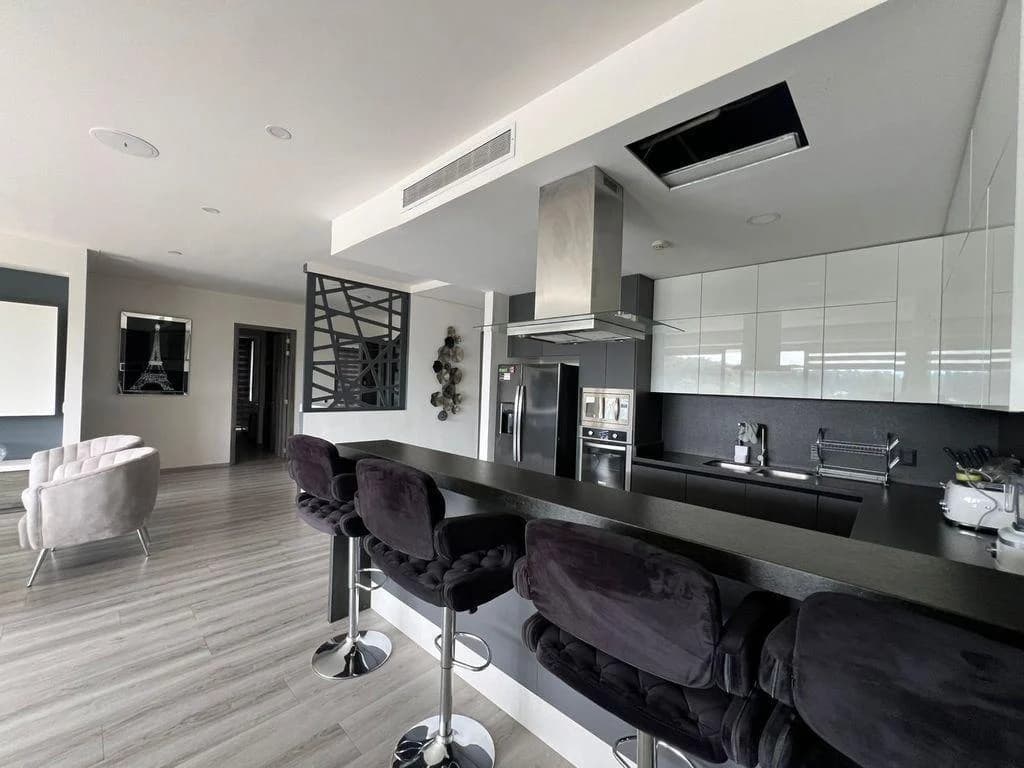 Ubicado en Av. Montevideo 3550, Zapopan, Jalisco, dentro de una de las zonas más exclusivas de la ciudad, este amplio y elegante departamento ofrece comodidad, seguridad y amenidades de lujo. Características principales: Terreno 200.71 m² Construcción 196 m² Antigüedad 6 años Piso 5 2 lugares de estacionamiento 3 recámaras (cada una con baño completo y cancel de vidrio templado) 4 baños completos + 1 medio baño Cocina con barra Sala – comedor con divisiones diseñadas a medida Cantina Cuarto de lavado y cuarto de servicio Terraza Pet friendly El departamento esta totalmente mueblado Amenidades Cine Zona kids Sala ejecutiva Salón de eventos Alberca precio de renta con mantenimiento incluido Extras Vigilancia y acceso controlado 24/7